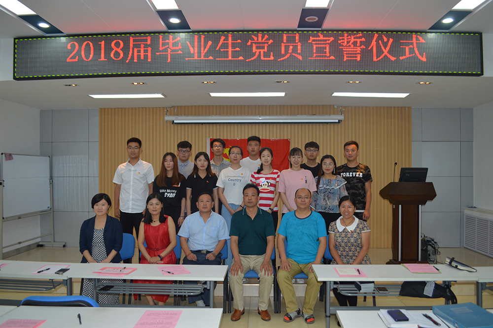 6月28日,鐵道運輸與財經管理系黨總支學生黨支部舉行2018屆畢業生新黨員宣誓儀式。黨總支書記呂鵬、學生黨支部書記欒金志、團總支書記張錦及輔導員范秀菊、陳偉、張蕾等參加活動。