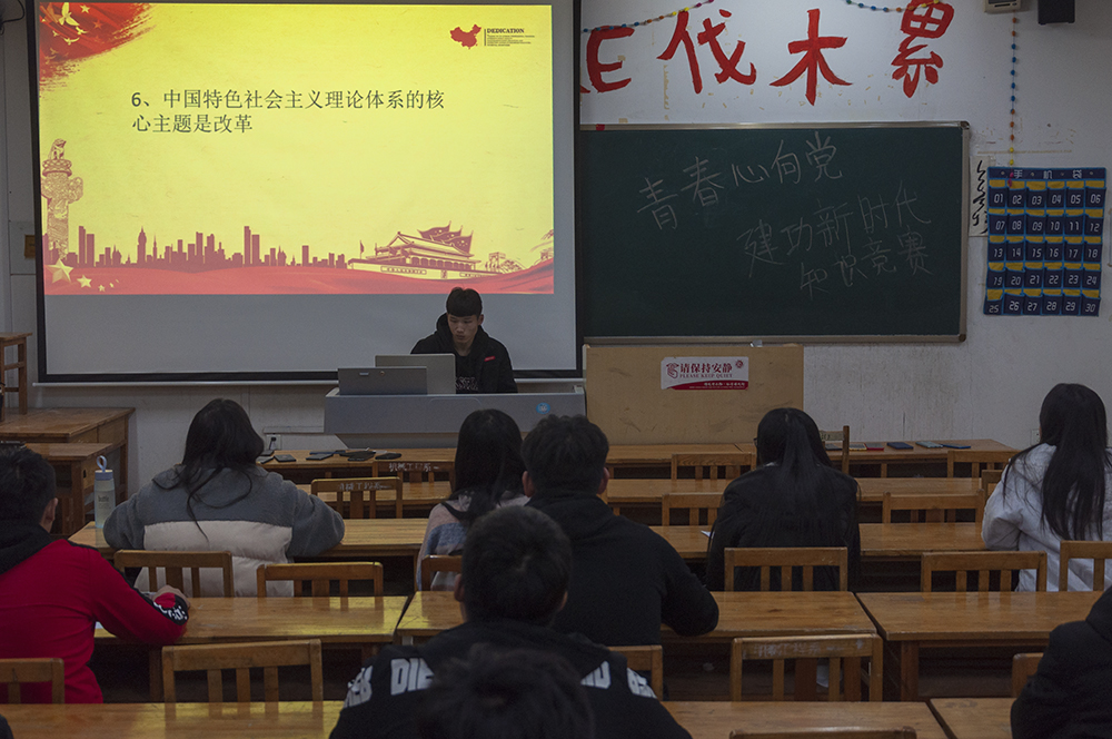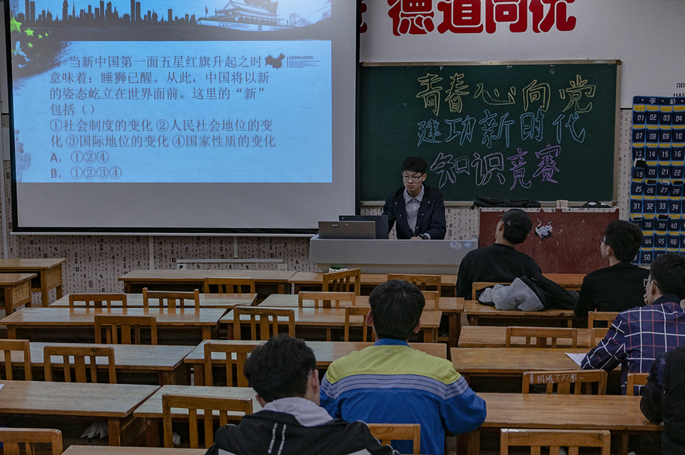 競賽中,選手們集中坐在臺下,對熒幕上的隨機出現的競賽題目進行書面作答。整個過程中教室內極為安靜,只能聽見同學們書寫的“刷刷”聲,比賽時間不長,但每位選手都在這短暫的時間里用盡自己的全部思緒對題目進行一一作答。通過本次競賽,同學們紛紛表示加深了對習近平新時代中國特色社會主義思想的理解,提高了責任意識和擔當意識,增強了歷史使命感,在今后的日子里要更加積極的響應組織的號召,團結一心,并肩向前。