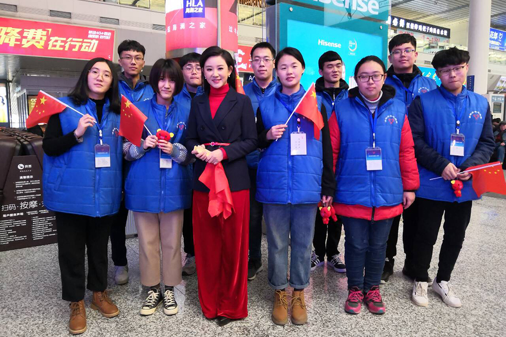 學院大學生志愿者們高質量的服務水平和有溫度的服務態度得到廣大乘客的好評。團省委、中國鐵路濟南局集團有限公司團委及學院領導也十分關心志愿者的工作情況,1月30日,共青團山東省委副書記李夢遙,山東省志愿者行動指導中心主任劉北雪,濟南市團委副書記孔慶松,濟南市槐蔭區委常委、宣傳部部長趙晨光,中國鐵路濟南局集團有限公司團委書記胡海,學院學生工作處處長兼團委書記劉紅到濟南西站看望慰問服務在春運一線的青年志愿者們,為他們送上親切的關懷和精心的禮物,并對他們貼心、暖心、精心、細心的服務點贊。