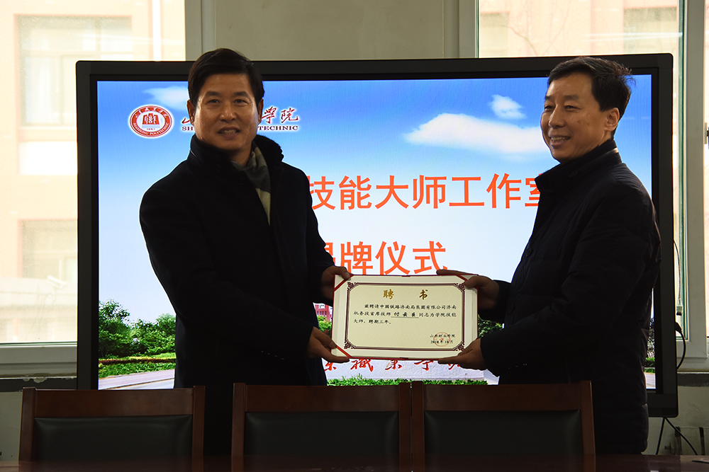 為進一步深化校企合作,提高鐵道機車專業人才培養質量,12月27日,鐵道機車與機電裝備系舉行了付云臣技能大師工作室揭牌儀式。中國鐵路濟南局集團有限公司首席技師付云臣,系主任徐曉東、黨總支書記王培林、副主任唐勇、鐵道機車專業教研室主任王志亮以及教研室全體專業教師參加揭牌活動。