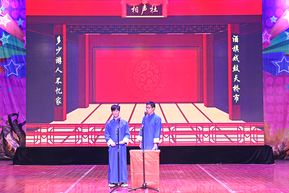 晚會在開場舞《盛開花朵》中拉開帷幕。器樂協會帶來的流行歌曲《沙漠駱駝》以激昂澎湃的曲調、歡快明朗的節奏,仿佛讓人置身于蒼茫大漠的異域風情,令人心血沸騰。充滿古風古韻的《青花瓷》合唱,展示了古典美的柔順溫婉,讓觀眾如癡如醉。新媒體部的街舞《Super new media》與治保部的舞蹈《走火》,激情帶感的節奏,夸張有力的動作,一次次將晚會氛圍推向高潮。小品《甄嬛后傳》、《上學那些事》匠心獨運,大膽的融入反串角色,極具喜感,反串表演者詼諧幽默的表演風格,引得在場觀眾捧腹大笑。