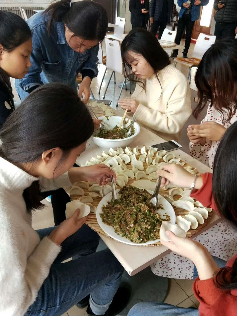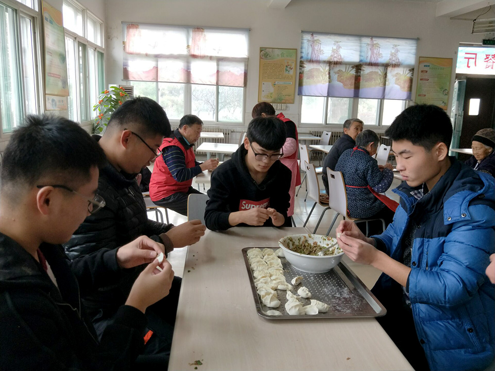 活動期間志愿者們發揚不怕苦、不怕累的精神,幫老人們打掃院子和屋子、整理床鋪、擦拭儲物柜,讓老人們生活的環境變得干凈整潔。隨后,志愿者們和老人一起包餃子,讓整個敬老院充滿著溫馨、快樂的氣氛。在包餃子的過程中,志愿者們和老人們一起談家常,聊生活,暢談往事,老人說他們的兒女因為工作繁忙或在異地工作不在身邊,無法時時陪伴,兒女們又放心不下他們一個人在家,所以才搬到了這里。老人們還講述了他們年輕時候的奮斗精神,并鼓勵年輕人們要積極努力,報效祖國。