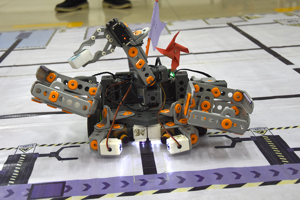 本次大賽分為答辯會和機器人搬運競技比賽。答辯過程中,同學們就各自課題的研究背景,技術架構、實施方法和研究成果等作了精彩介紹。課題內容選題廣泛,涵蓋人工智能、計算機視覺等學術研究領域,涉及果實自動剝皮機、人工智能馬桶和現實生活的人臉表情識別等多個真實應用場景。評委們對課題的技術手段、參數指標、改進方法等提出了指導性意見。機器人搬運競技比賽是由學生自主動手編程并制作物料,讓機器人搬運。比賽現場進行了激烈的競爭。比賽中,每支隊伍有10分鐘調試時間,比賽限時兩分鐘,共兩次機會,取最短時間為最后成績。在這場精準與速度的比拼中,各參賽隊伍狀態極好,都發揮出了自己的水平。智能機器人看似簡單的走路,實際上是大量的理論知識和實踐操作的結合。本賽事激發了參賽隊員的合作精神,也是對參賽選手實踐能力的考量。