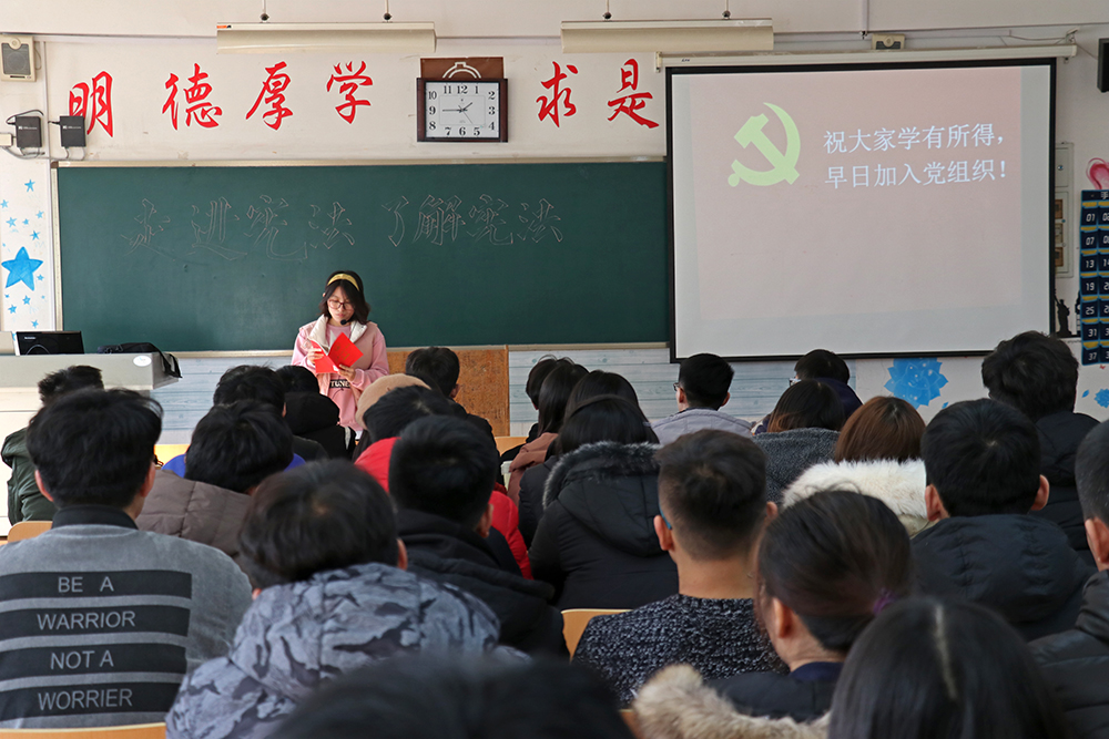 張娜從我國憲法的地位、產生、發展、修改、作用意義等方面進行了系統講解。她強調,憲法作為國家的根本大法,是治國安邦的總章程,入黨積極分子們應該增強憲法意識,自覺維護憲法權威,弘揚憲法精神。張娜為大家普及了憲法宣誓制度,帶領入黨積極分子們認真解讀了《中華人民共和國憲法》讀本,著重強調了憲法歷程與憲法內容。期間,大家還觀看了憲法宣傳片。張娜強調,入黨積極分子應該深刻認識到憲法修改的重要意義,準確領會和把握憲法修正案的核心要義和實質。