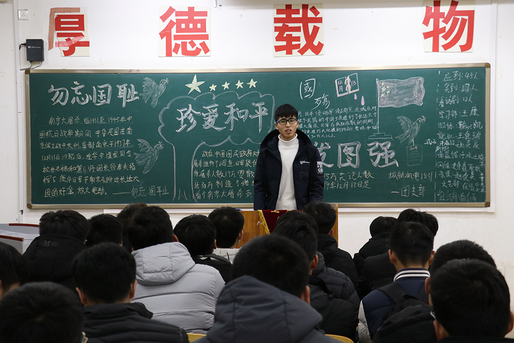 昭昭前事,惕惕后人。12月12日,城市軌道交通系舉辦“勿忘國恥,珍愛和平,奮發圖強”主題班會,以敲響歷史的警鐘,啟迪學生珍惜和平生活。
