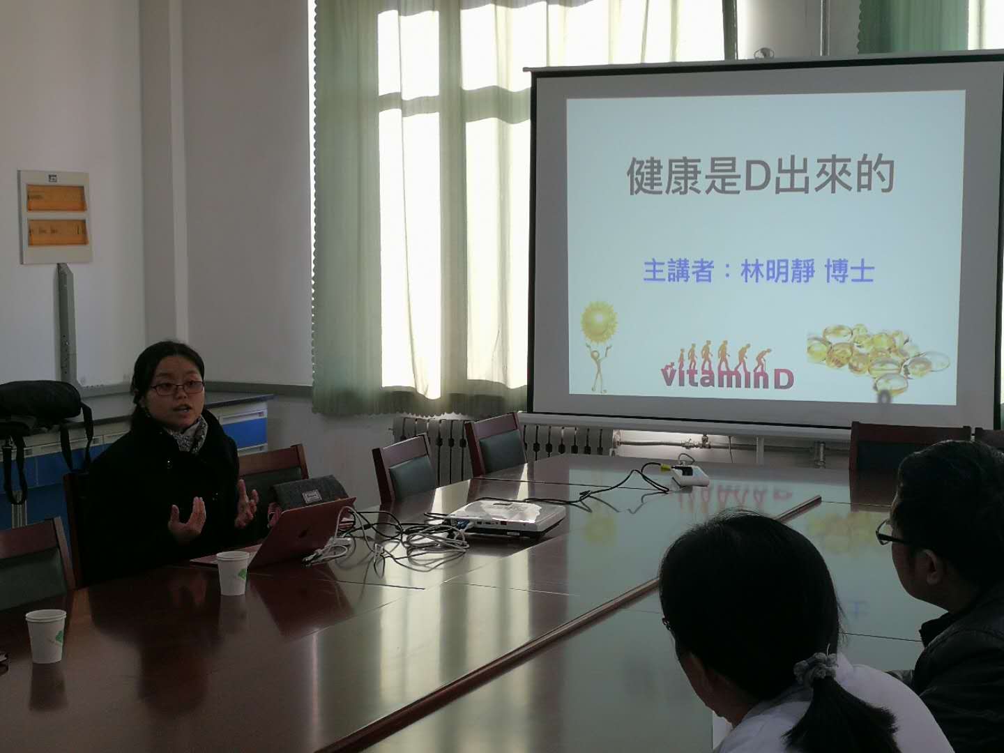 林明靜從維生素D缺乏引發的健康問題切入,分析了VD營養狀況,重點介紹了VD在防癌、增強免疫力、降低心血管疾病、改善睡眠等方面的作用,并對VD的來源進行分析,從日光照射、飲食攝入及VD制劑補充方面給出了建議,詮釋如何從科學角度正確選擇VD。主題報告結束后,林明靜博士與生物工程系的老師們就目前市場上VD動物性、植物性原料來源,效果差異進行了深入細致地交流,圍繞目前存在的問題及以后研究方向展開了熱烈的探討。本次交流會持續了兩個多小時,內容豐富,啟發性強,增強了科研工作的系統性和創新性,使我校科研工作者受益匪淺,有效推動了科研工作的開展。
