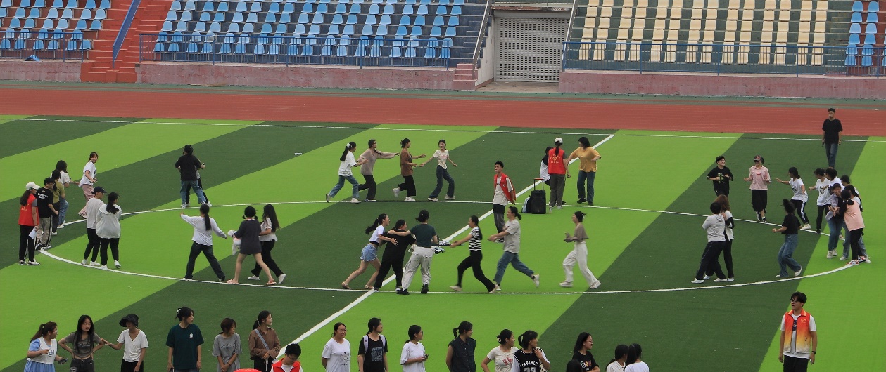 為進一步拉近新同學之間的距離,使他們盡快地融入集體,更好地適應大學的學習與生活,團委在運動場舉辦了“破冰之旅”團建活動。通過“無聲接力”“抱堆”“擊鼓傳花”三個戶外拓展項目,同學們從尷尬到融洽再到熱烈,加強了彼此的交流與合作,能夠更好的融入集體。