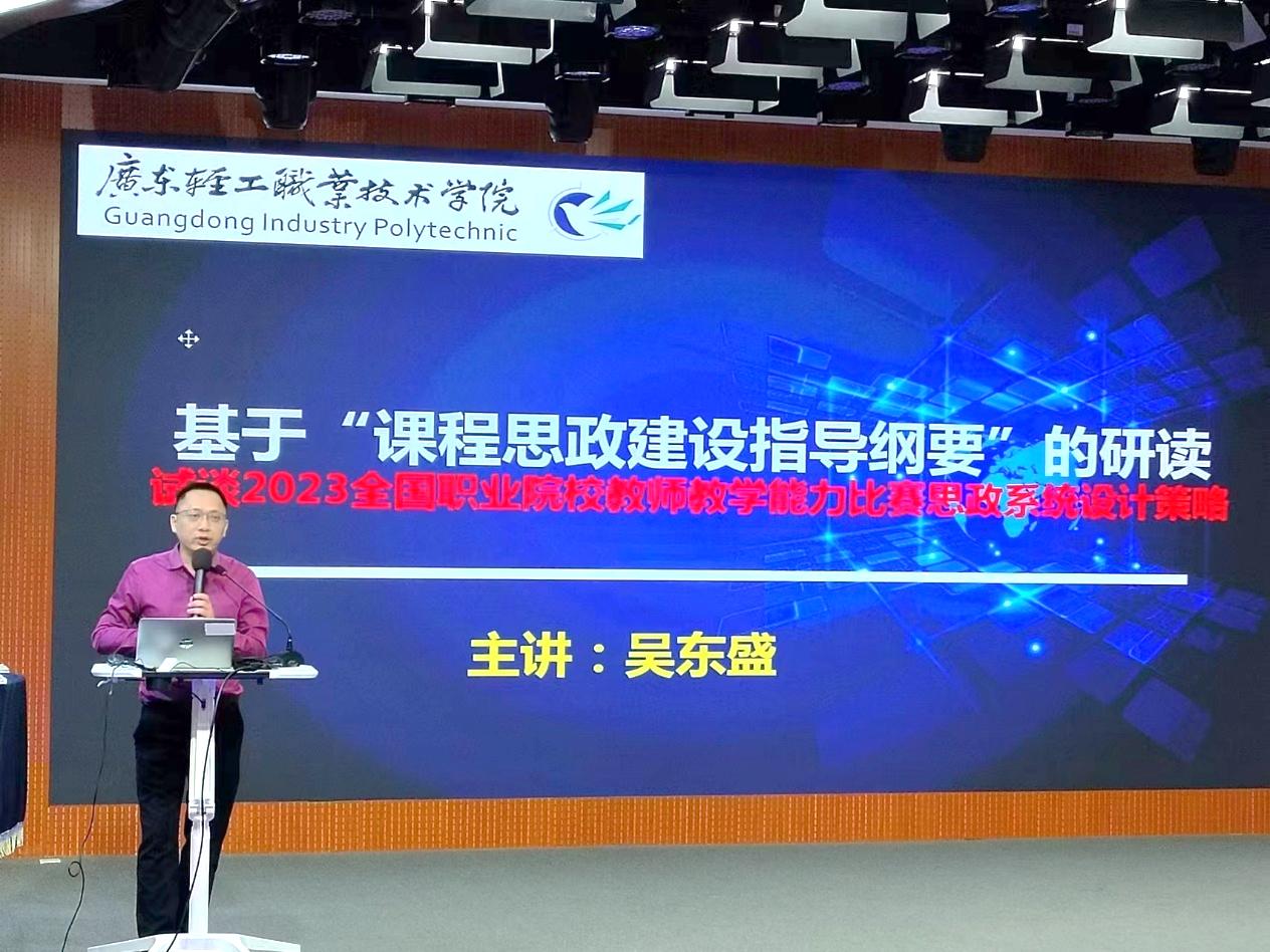 工作坊邀請到全國職業院校技能大賽教師教學能力比賽一等獎獲得者、廣東省教師教學能力大賽評審專家、廣東輕工職業技術學院副教授吳東盛。他將從競賽文件解讀、課程思政系統化設計及申報、如何組隊和選題、教師教學能力比賽相關材料撰寫、教師課堂教學等方面進行培訓,并通過布置工作坊專題工單,分組討論、匯報等形式,對教師參賽作品進行點評、指導。