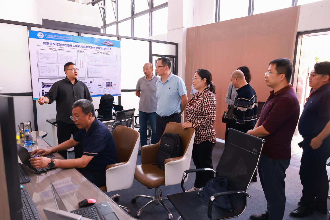 郭培謙一行實地參觀了該校鐵路機車車輛駕駛人員資格實操考試模擬駕駛考點、軌道交通產教融合實訓基地、信息化智慧教室等地。