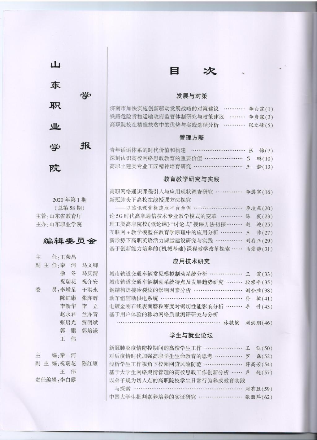 2020年第一期學報目錄