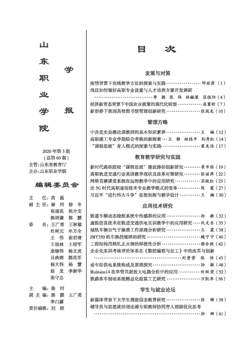 2020年第三期學報目錄