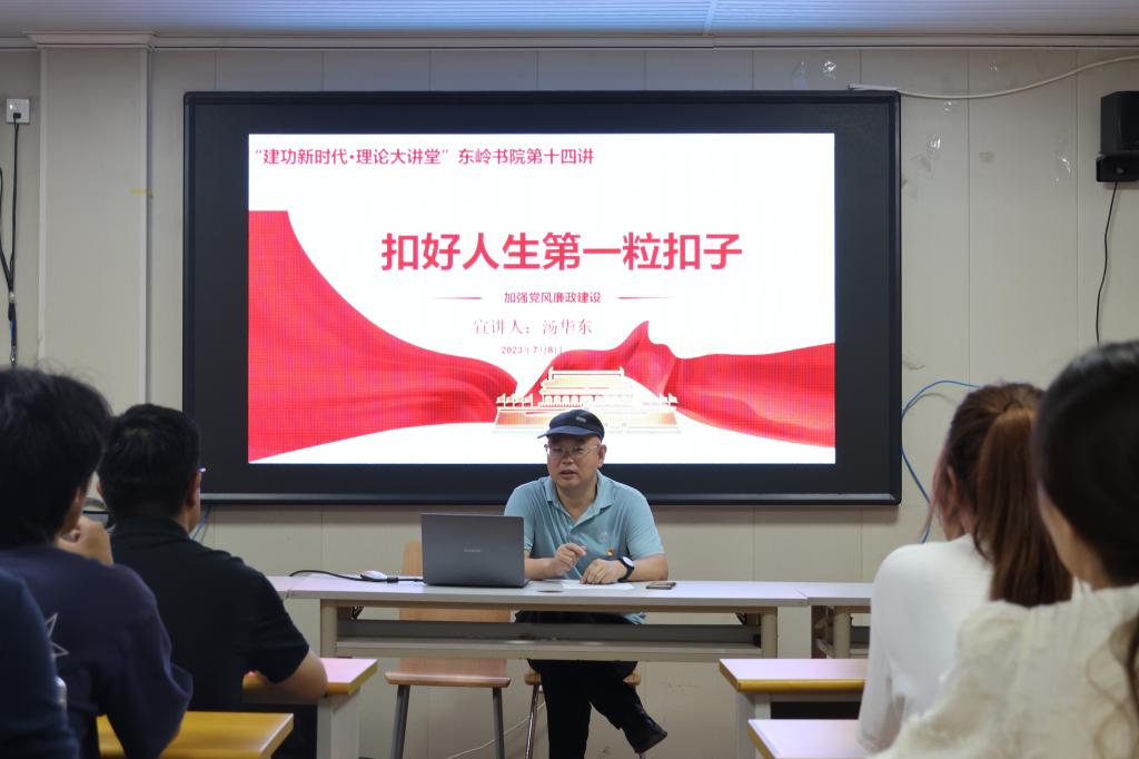 7月8日,東嶺書院“建功新時代·理論大講堂”專題宣講第十四講在書院右苑一樓黨團活動室開講,書院黨總支書記湯華東進行宣講,東嶺書院部分老師和學生黨員參加。