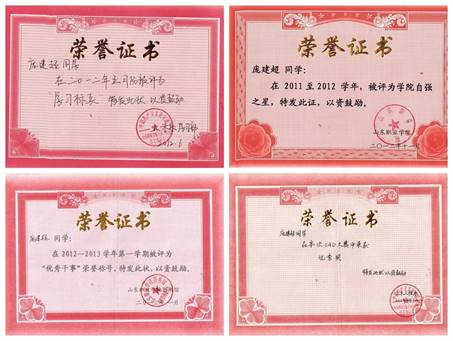 2011級土木工程系道路橋梁工程技術專業龐建超,2014屆山東省優秀畢業生。在校期間獲國家勵志獎學金3次,省級證書2次,A等獎學金4次,B等獎學金6次,院優秀學生4次,院自強之星、學習標兵等榮譽,在校期間獲得老師們的一致好評。2014年7月畢業,就職于中鐵十局第四工程有限公司。主要參建項目有贛韶鐵路、鎮江五鳳口高架橋、連云港院前路上跨橋、連云港204國道立交橋、阜陽新韓路上跨立交橋等。現任中鐵十局四公司阜陽新韓路上跨立交橋項目工程部部長,同時兼任項目部團支部書記。參加工作以來,先后榮獲公司QC發表一等獎、三等獎,局QC發表一等獎,公司優秀團員,優秀團干部,先進工作者,演講比賽優秀獎,中國中鐵“優秀團員”等榮譽。