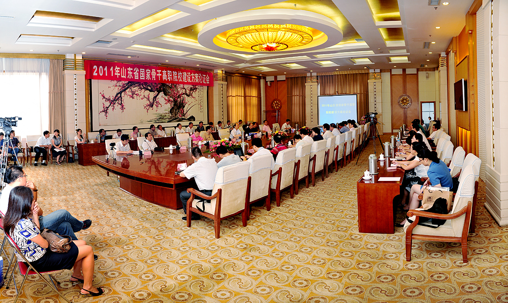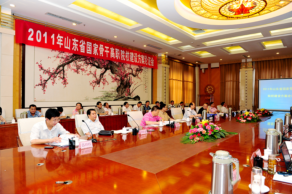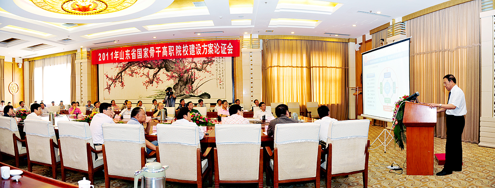 按照《教育部辦公廳 財政部辦公廳關于啟動2011年度“國家示范性高等職業院校建設計劃”骨干高職院校項目建設工作的通知》(教職成廳函[2011]44號)的要求,由山東省教育廳、財政廳組織的2011年山東省國家骨干高職院校項目建設方案論證會于2011年8月9日在濟南舉行。教育部高教司原副司長朱傳禮、天津職業大學校長董剛、石家莊鐵路職業技術學院黨委書記胡振文、浙江亞龍科技集團董事長陳繼權、青島職業技術學院院長史忠健等五位專家對山東職業學院國家骨干高職院校項目建設方案和項目任務書及預算進行了論證,省教育廳副廳長宋承祥、省財政廳教科文處處長鐘澤圣、省教育廳高教處副處長張鵬程等領導出席論證會。在濟的學院領導學院院長鄧洪基,黨委副書記、常務副院長馬文卿,副院長徐冬、副院長祝瑞花、紀委書記祝介安及骨干項目建設專業和相關職能部門負責人參加了會議,會議由省教育廳高教處處長宋伯寧主持。