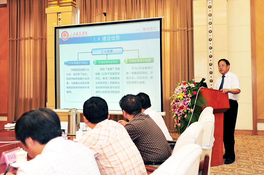 論證會上,專家組在審閱材料的基礎上,聽取了鄧洪基院長和重點建設專業負責人關于建設方案及任務的介紹,并就建設目標、任務、經費預算與可監測指標等問題進行了詢問、答辯與論證。專家組認為,我院《國家骨干高職院校項目建設方案》及《項目建設任務書》符合《教育部 財政部關于進一步推進“國家示范性高等職業院校建設計劃”實施工作的通知》、《教育部 財政部關于確定“國家示范性高等職業院校建設計劃”骨干高職院校立項建設單位的通知》、《教育部關于全面提高高等職業教育教學質量的若干意見》及示范性高等職業院校建設相關文件精神。《建設方案》結合軌道交通行業發展和山東區域經濟轉型與結構調整的要求,在校企合作體制機制建設、專業建設與人才培養模式改革、師資隊伍和領導能力建設、專業建設與人才培養模式改革、師資隊伍和領導能力建設、社會服務能力建設等方面目標明確、思路清晰、內容全面,經費配置合理,預期目標和驗收要點可操作、可檢測。