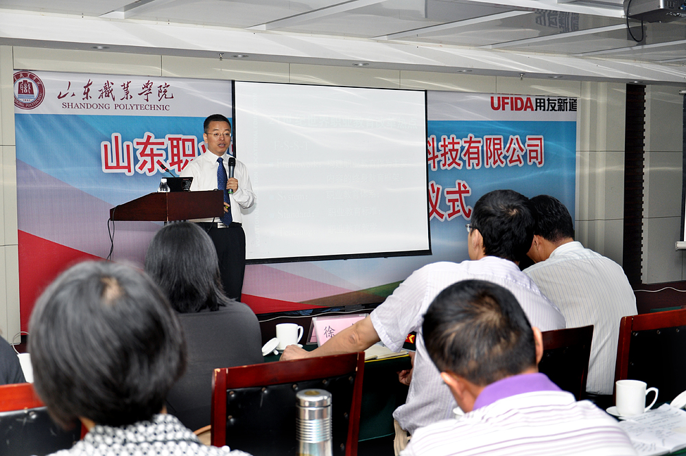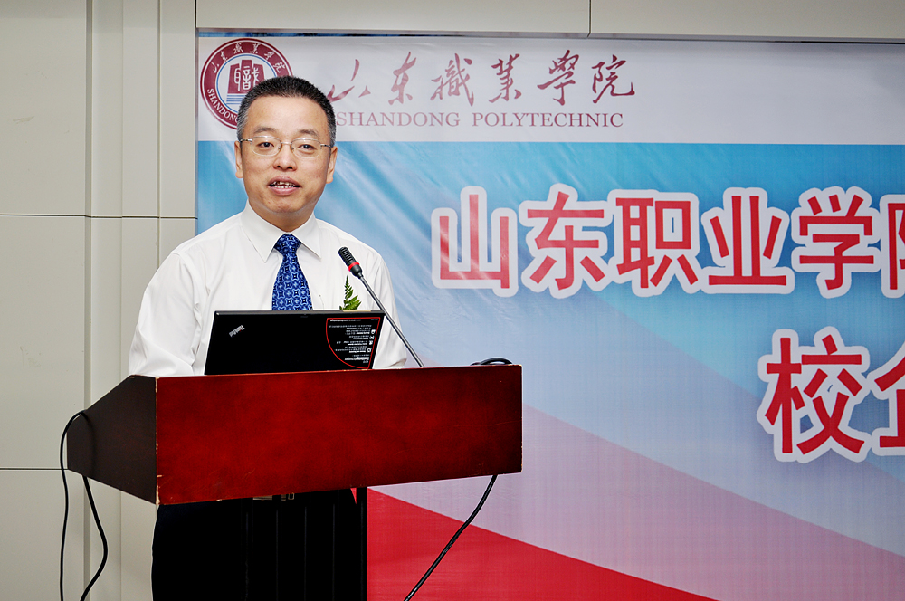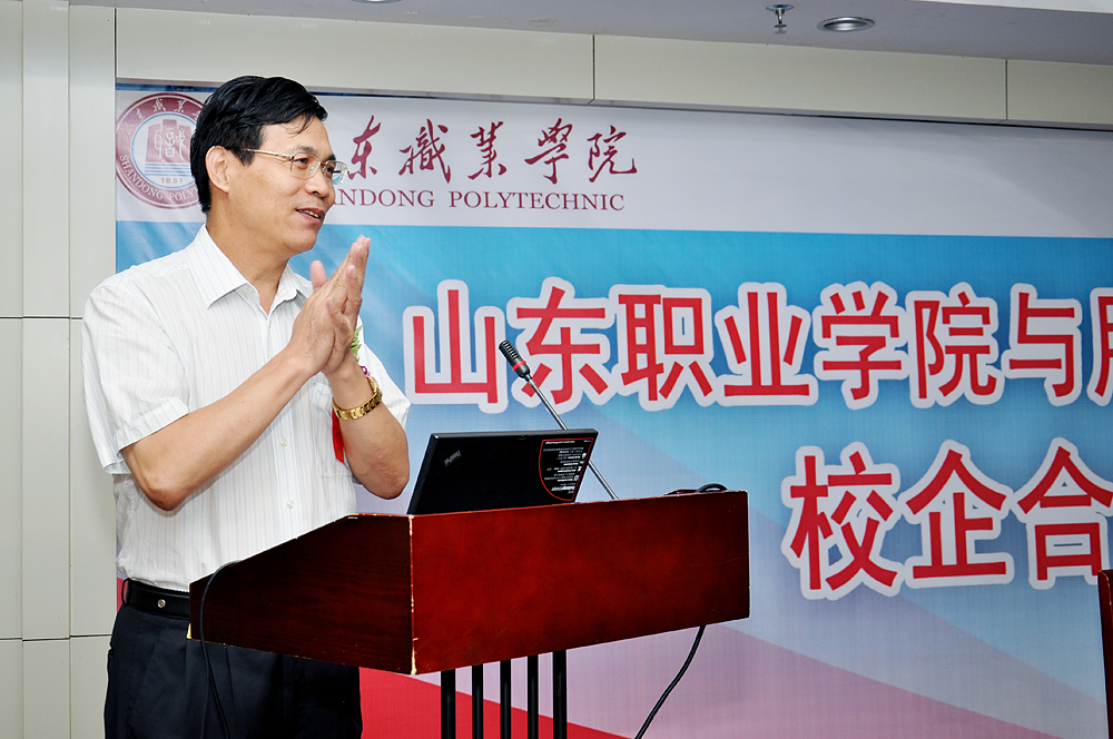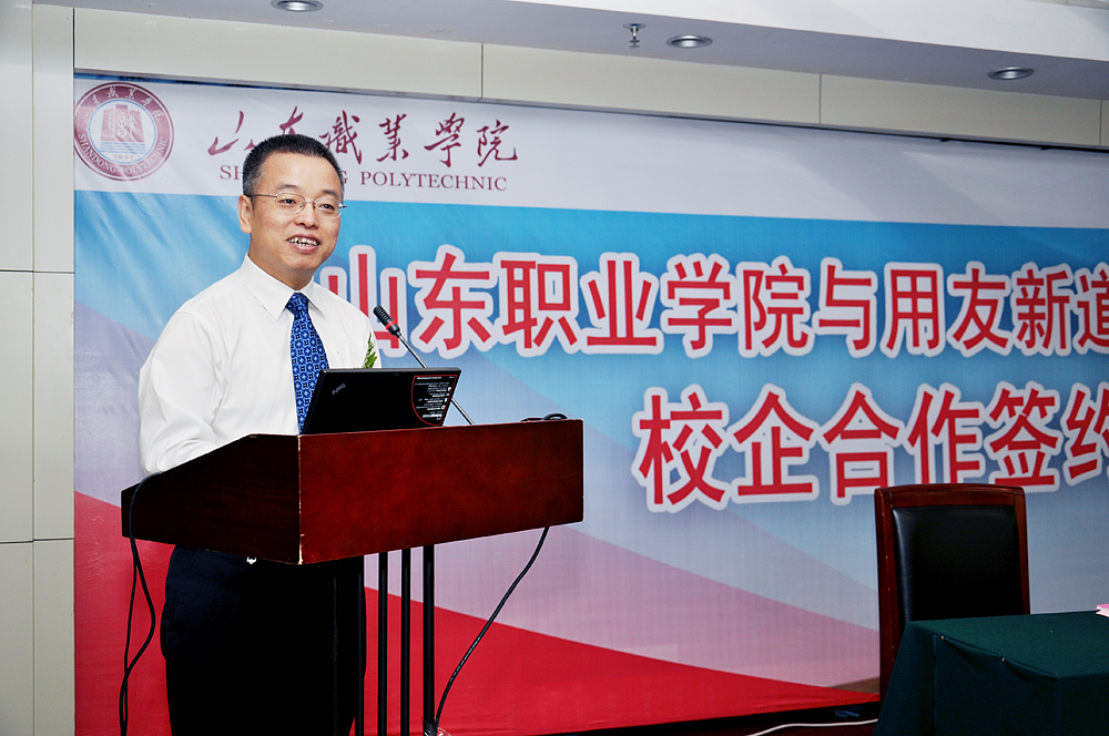 馬德富指出,此次與山東職業學院達成校企合作共識,雙方合作共建虛擬商業社會環境VBSE實習實訓基地,對用友新道來講是實現公司以“建設與實踐高品質人才培養體系,提升個人與組織能力與績效”的使命的有力舉措。通過樹立“山東地區高職院校人才培養”樣板工程,可以為國內各院校的教學、科研、區域人才培養等提供參觀、交流、實踐環境,可以不斷提高企業形象。他指出,此次合作是中國第一個綜合實訓平臺跨專業合作的里程碑,是在新的教育改革形式下校企深入合作的里程碑,也希望在將來會成為探索中國職業教育改革新道路的里程碑。同時,馬德富預祝校企合作不斷深化,共同探索、開創中國職業教育新局面。