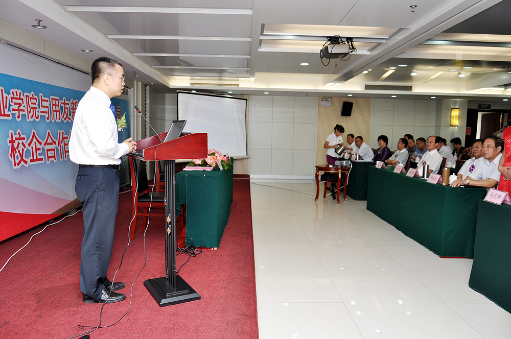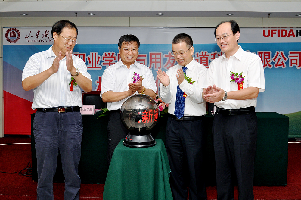 馬文卿在主持儀式時談到,作為國家骨干高職院校建設立項單位,山東職業學院一直秉承“團結、勤奮、求實、創新”的校風,堅持“以服務為宗旨,以質量為核心、以就業為導向”的辦學方針,按照職業教育“開放性、職業性、實踐性”的要求,高度重視學生職業能力的培養,以“校企共建、資源共享”為原則,積極與企業合作建設校內實驗實訓室,建設“投資多元化、產品市場化、管理企業化、學習工作化”的校內生產性實訓基地,共同開發建設校外實訓實習基地,為學生順利就業,零距離上崗提供了保障。馬文卿指出,此次與亞太地區最大的管理軟件和服務提供商用友集團合作,是共進,是雙贏,并衷心祝愿校企合作不斷加深,樹立學院校企合作另一典范。