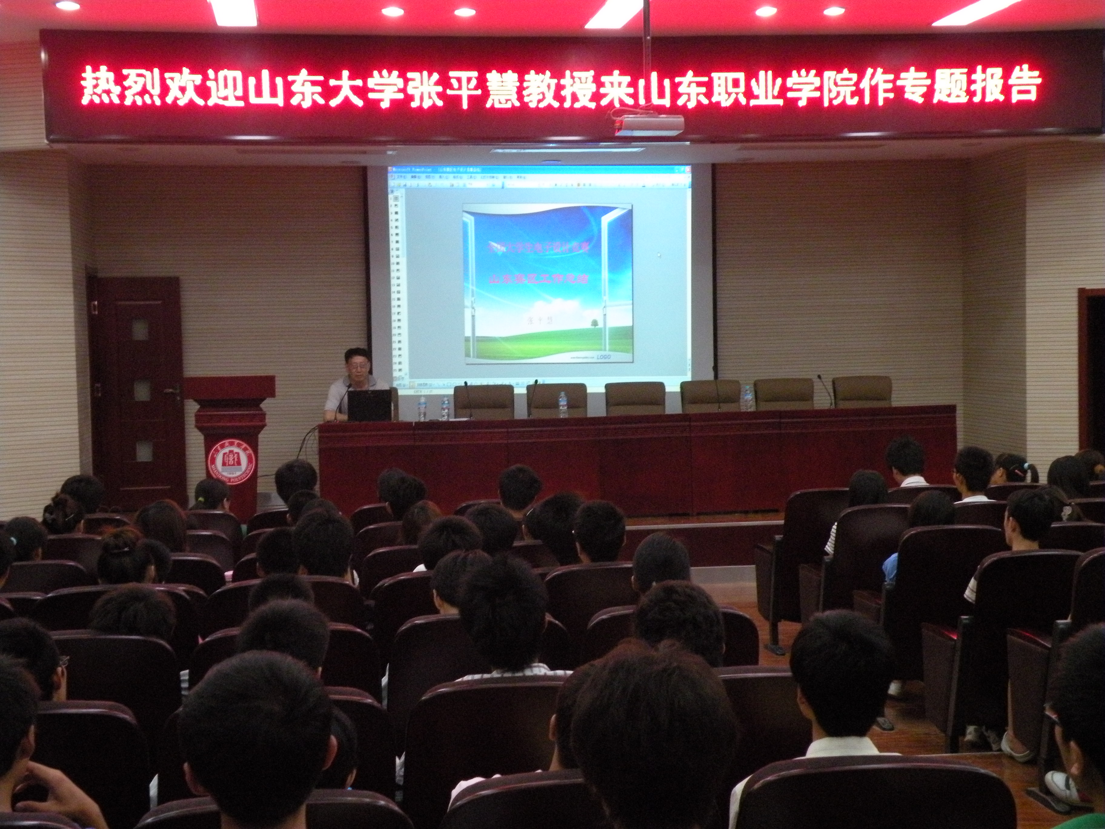 6月15日下午,應山東職業學院電氣工程系之邀,原山東大學教務處處長、國家教育部本科教學工作水平評估專家、全國大學生電子設計競賽山東賽區組委會秘書長張平慧教授來我院作2011年全國學生電子設計競賽專題報告。報告會由電氣工程系主任于洪永主持,學院教務處長郭鵬、電氣工程系副主任林毓梁及200余名師生聽取報告。