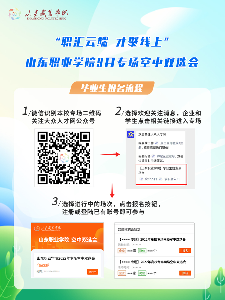 山東職業學院9月專場空中雙選會報名流程圖