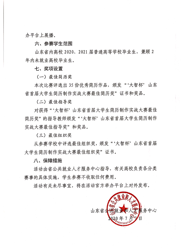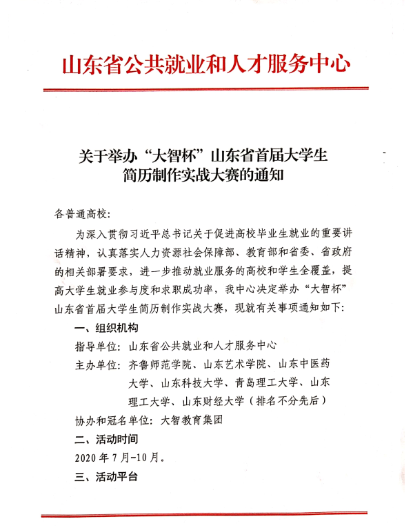 關于舉辦“大智杯”山東省首屆大學生簡歷制作實戰大賽的通知