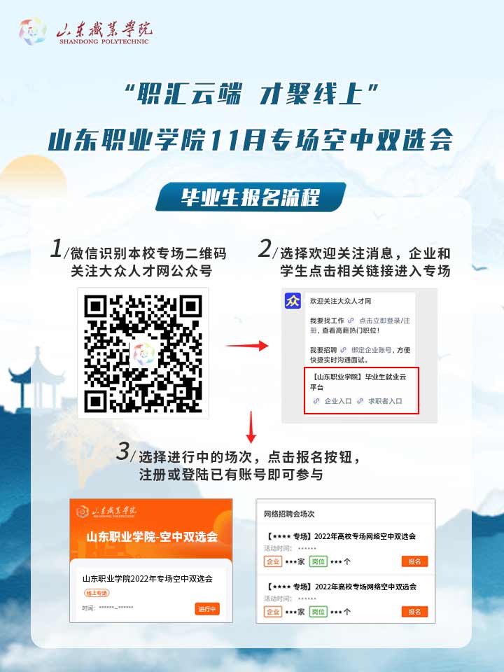 “職匯云端 才聚線上”山東職業學院11月專場空中雙選會報名流程圖