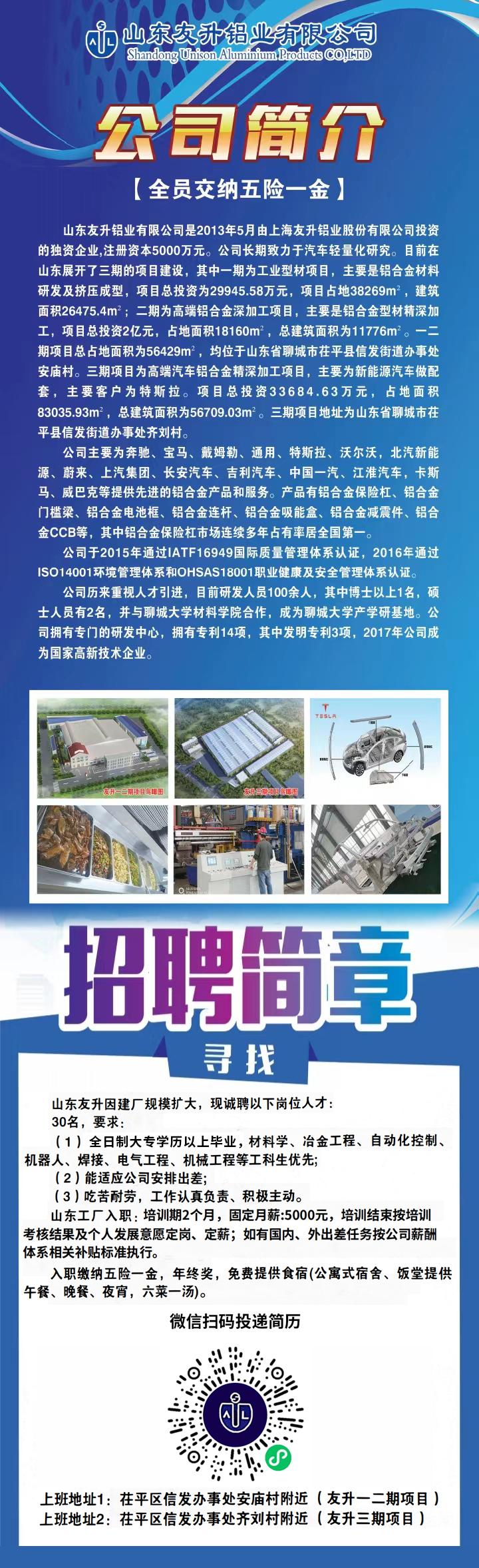 山東友升鋁業有限公司招聘簡章
