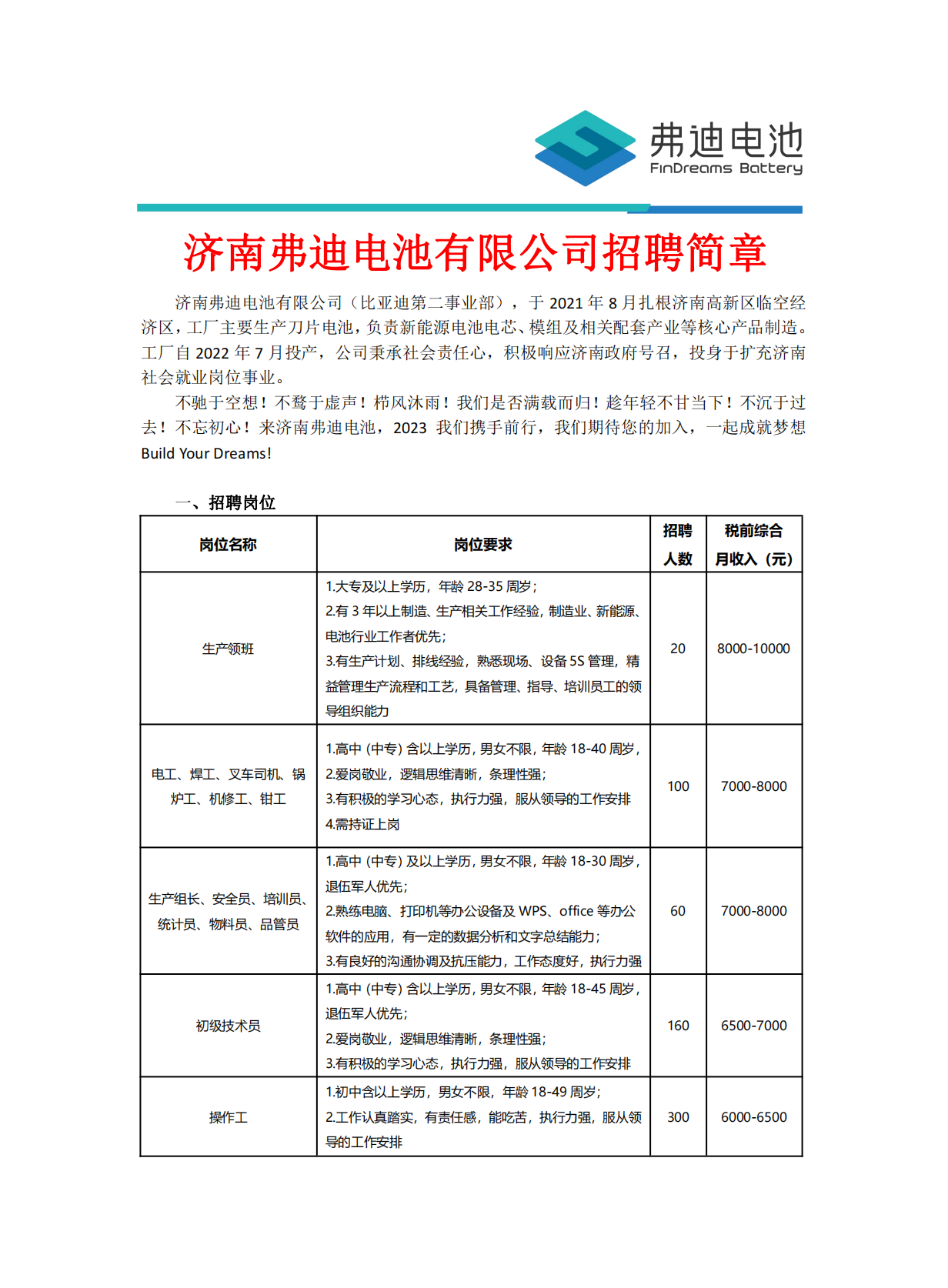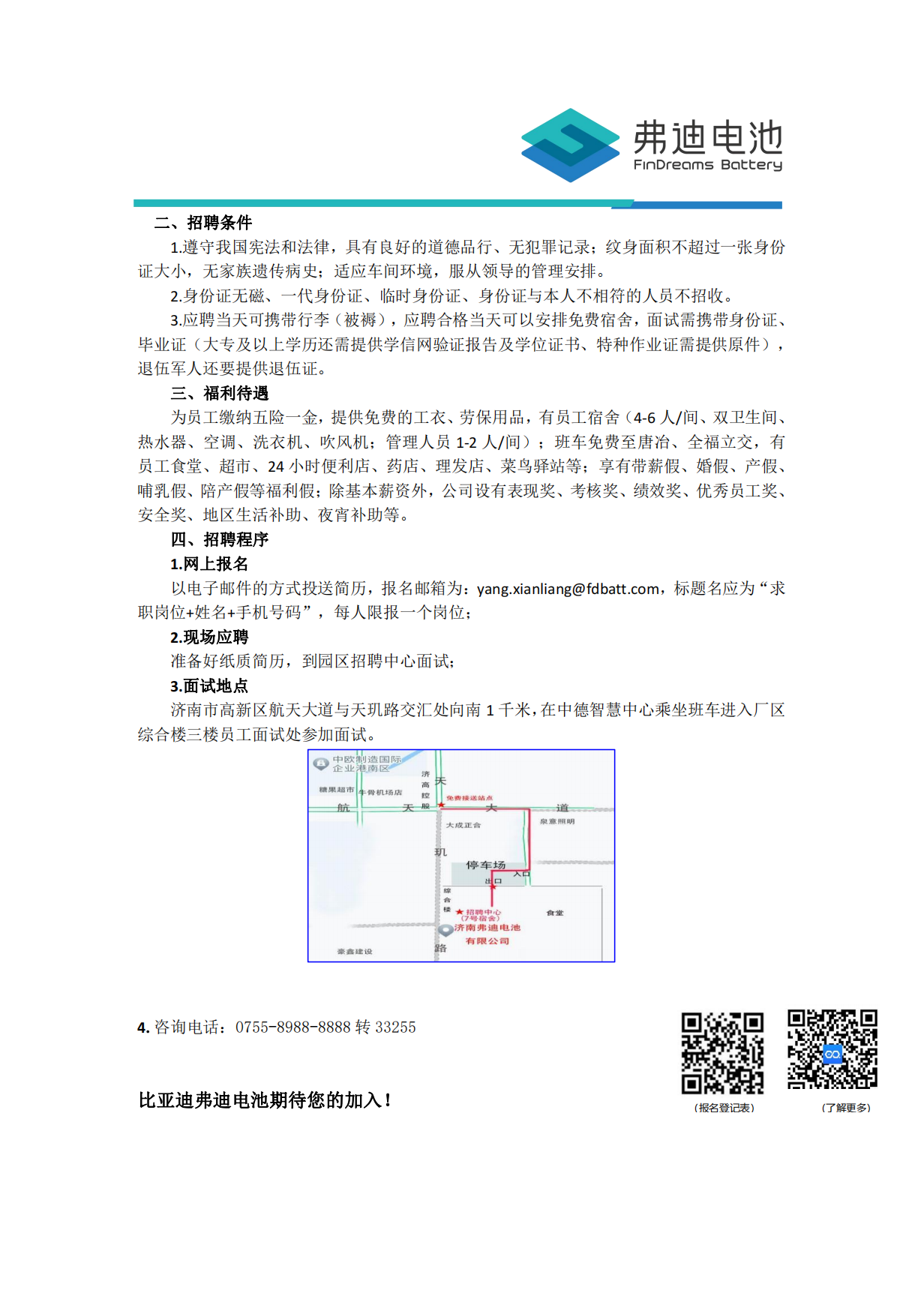 比亞迪公司關于后勤處濟南地區多個崗位招聘的公告