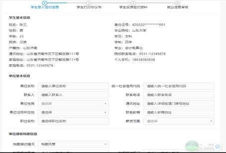 功能描述:實現省內院校畢業生與省外非系統注冊單位落實就業后信息登記功能。由畢業生錄入就業協議信息,提交畢業院校審核。