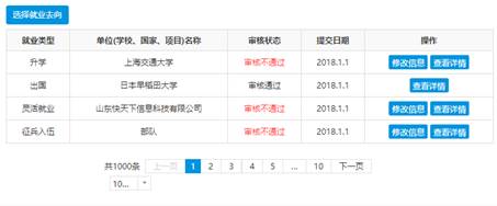 畢業生登記去向信息后,如學校未審核,則通過