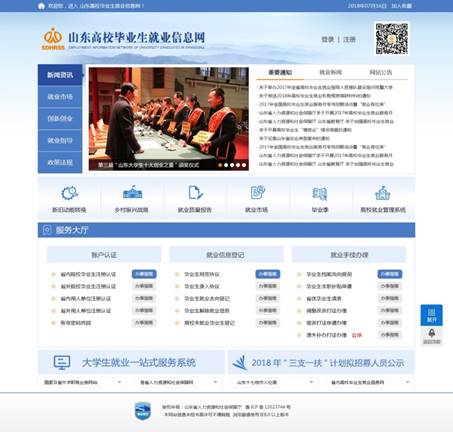 功能描述:實現山東省內院校離校未就業畢業生實名登記功能,登記就業、升學、出國、應征入伍以及未就業畢業生服務需求信息。