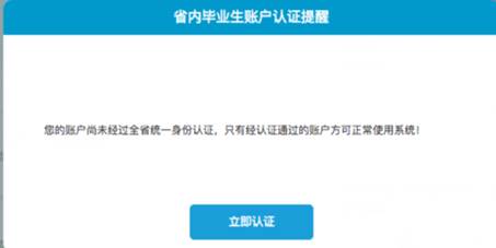 功能描述:省內院校畢業生首次登錄網上辦公專區后,系統彈出身份認證界面,提醒學生先完成身份認證。