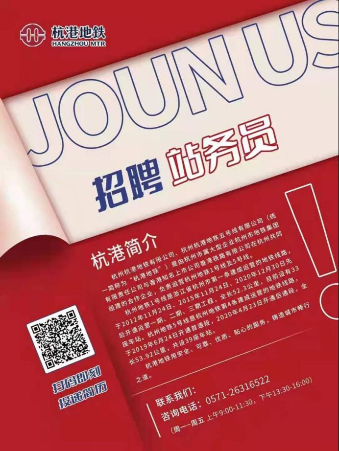 杭港地鐵招聘站務員