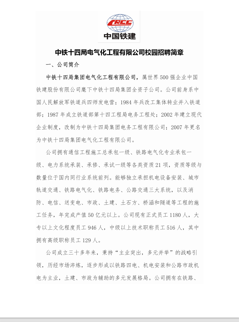 中鐵十四局電氣化工程有限公司2023年校園招聘簡章