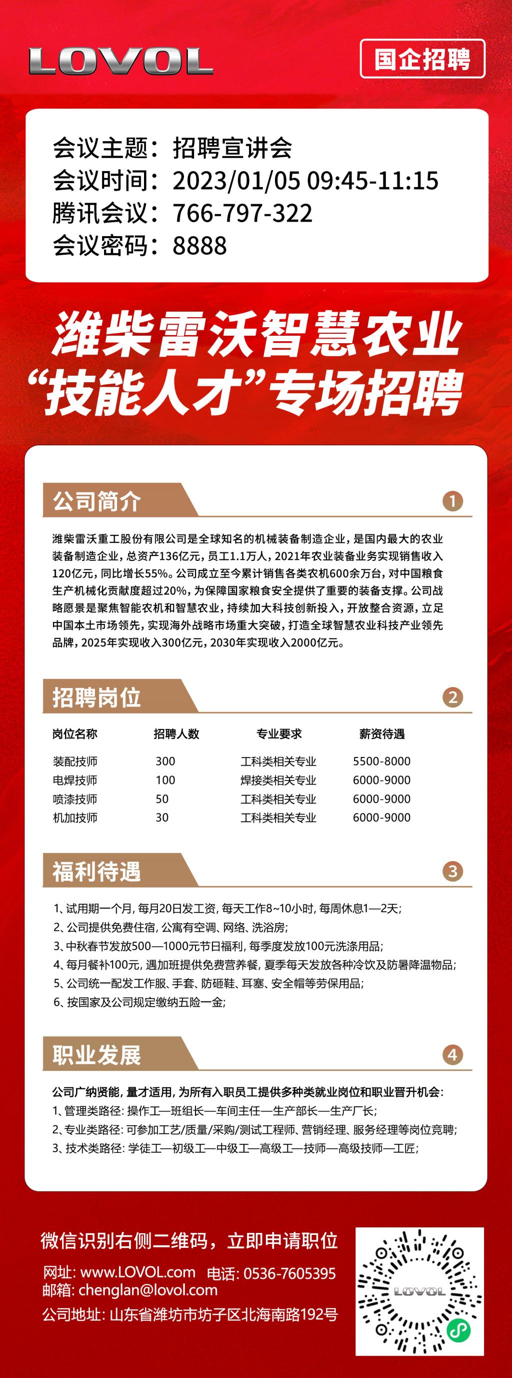 濰柴雷沃智慧農業“技能人才”專場招聘-騰訊會議