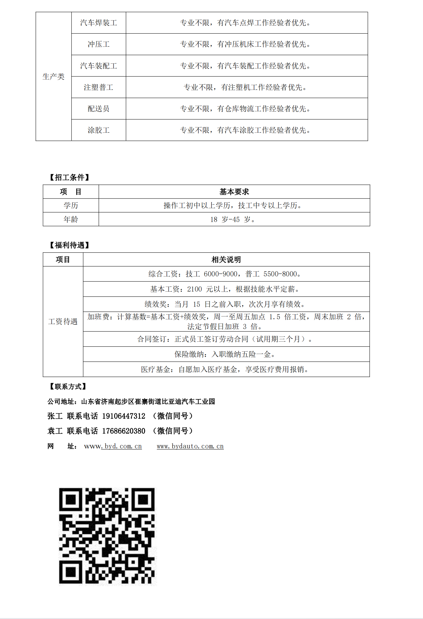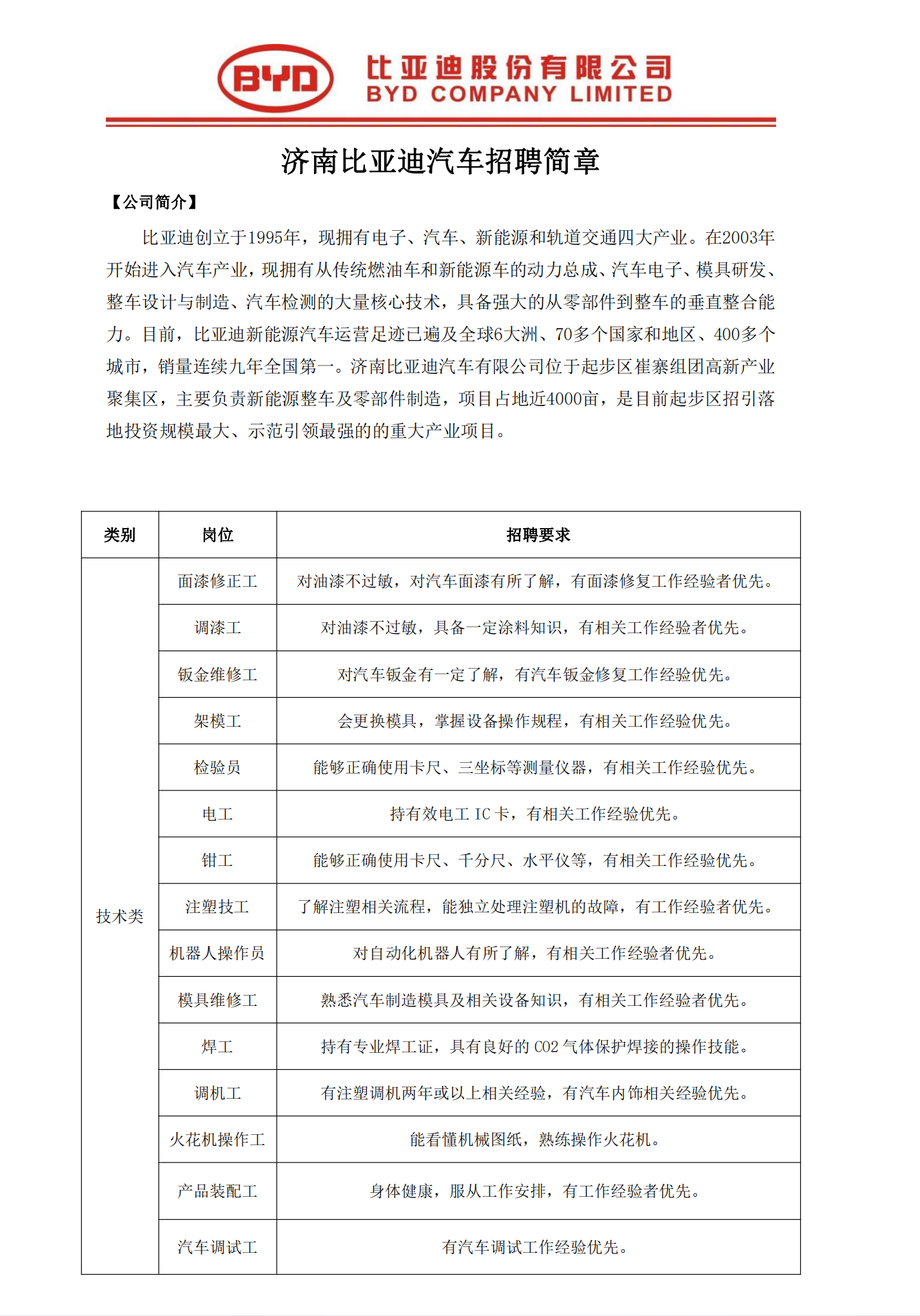 濟南比亞迪汽車招聘簡章