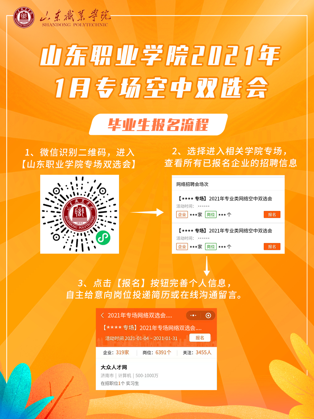 職匯云端 才聚線上 山東職業學院空中雙選會邀請函 2021年1月專場手機端