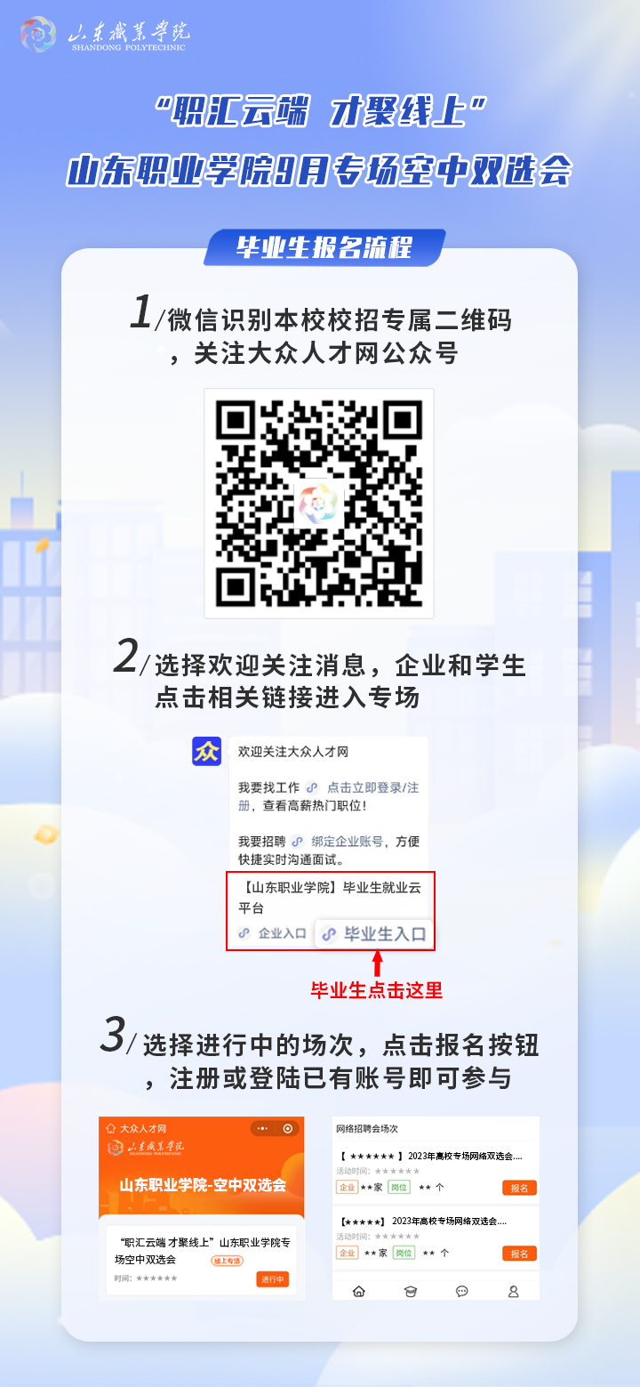 “職匯云端 才聚線上”山東職業學院9月專場空中雙選會畢業生報名流程圖