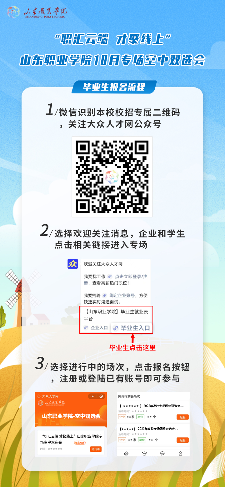 “職匯云端 才聚線上“山東職業學院10月專場空中雙選會報名流程圖