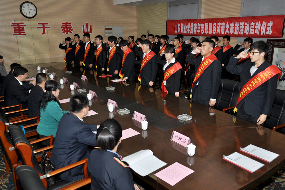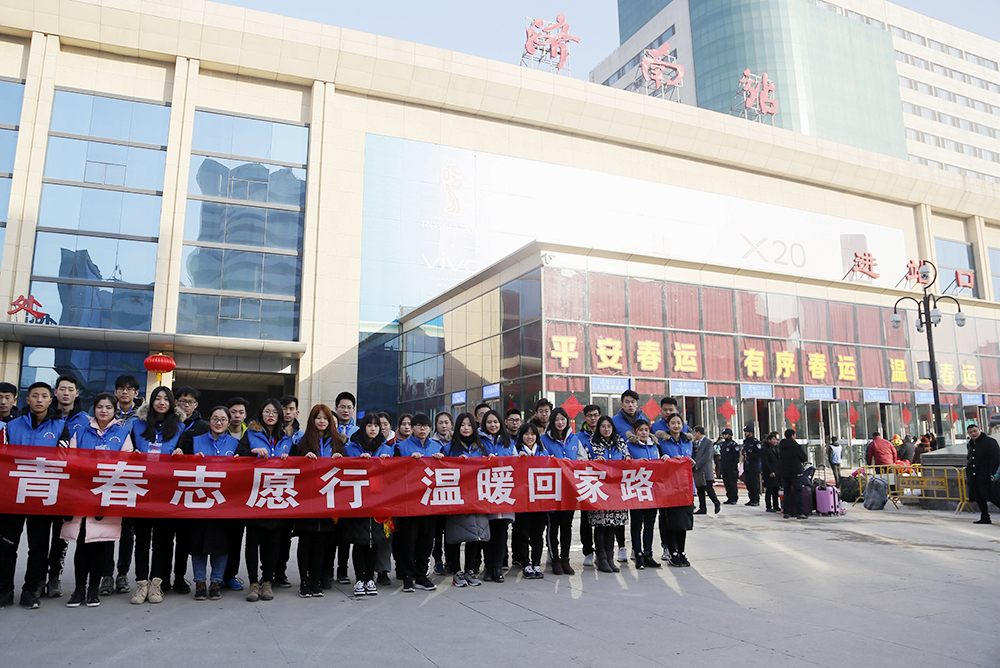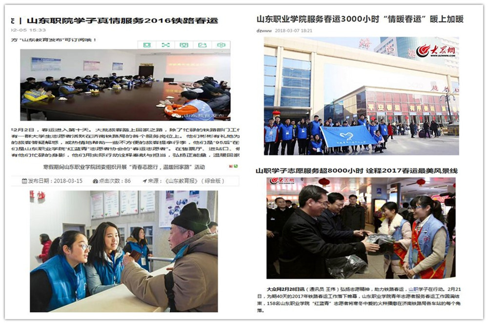 “情暖旅客,愛載歸途”志愿服務項目是我院“紅藍青”青年志愿者協會承接發展的主力項目,是由我院團委與中國鐵路濟南局集團公司團委深化校企合作,共同搭建的志愿服務實踐育人平臺。“紅藍青”志愿者協會成立于2013年11月,2014年4月正式啟動“情暖旅客,愛載歸途”志愿服務項目,山職院志愿者利用周末、節假日等重要時間節點服務于濟南站、濟南西站、大明湖站等重要客流密集車站,尤其是每年的春運、暑運為濟南鐵路局省內所轄主要車站提供優質、高效的志愿服務,截至2018年8月,已向社會提供超過100000小時的服務,服務6萬余人次,獲得服務方和旅客的高度認可。“紅藍青”志愿者已成為濟鐵志愿服務的主力軍和品牌明星,團中央志工部、團省委對我院志愿服務項目給予高度評價,學生志愿服務事跡被中央電視臺財經頻道、山東電視臺、山東教育報等主流媒體爭相報道。