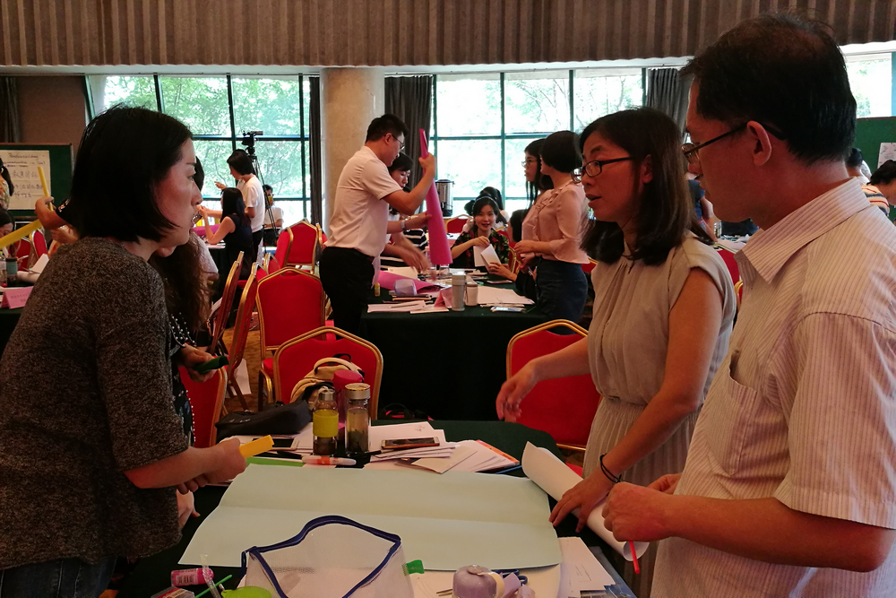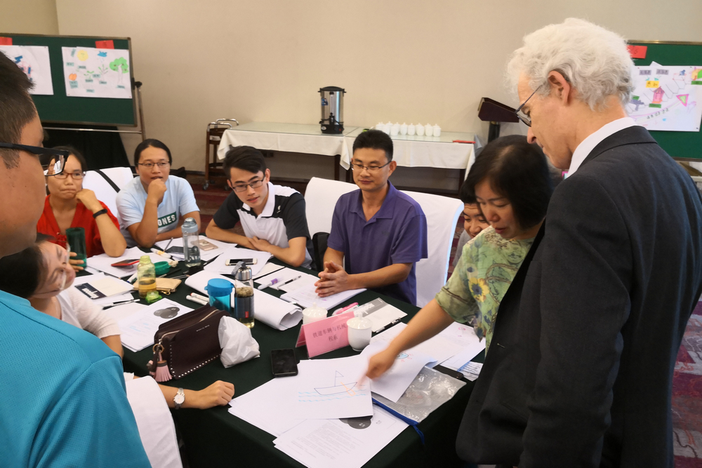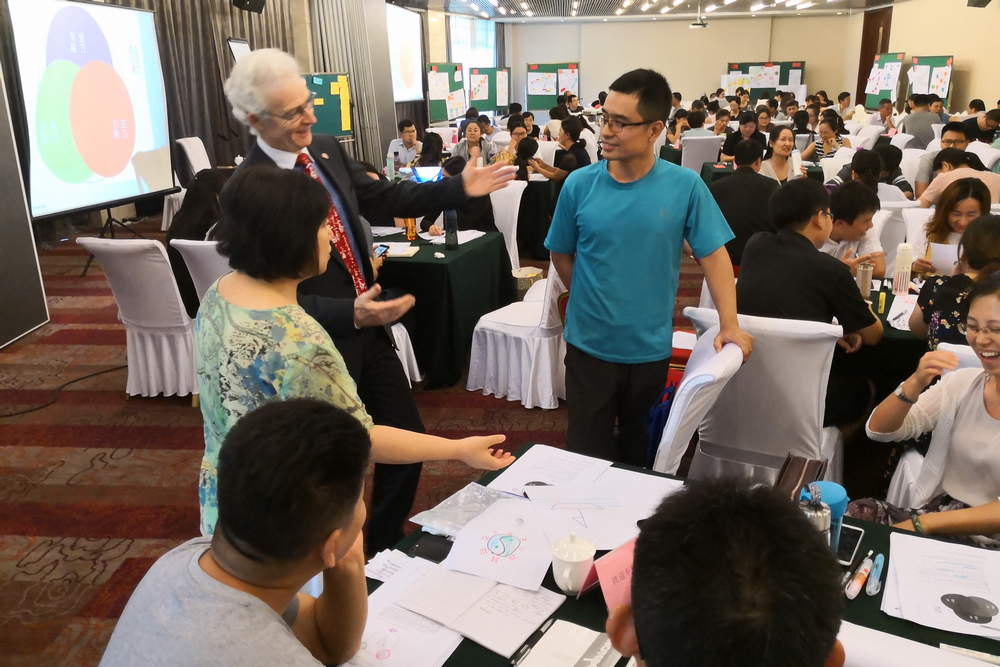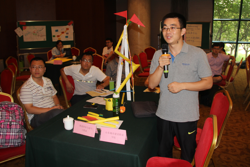 在為期四天的經驗交流活動中,胡格教授用生動的行動導向教學法為參會教師帶來了一堂堂關于職業教育教學法的課,與大家一起探討我們需要什么樣的職業教育,分析專業能力、社會能力與方法能力間的關系,分析能力目標下教學形式的轉變必然性,展示行動導向教學原則下教學方法的多樣性,展示教育心理學發展的成果及應用。胡格教授通過靈活有趣的關鍵字卡片法、理解標注文字法、小組擴展法、可視化法、伙伴拼圖法、旋轉木馬談話法、邏輯關系法、站位法、工作與小組過程提煉法等十幾種教學方法授課,一次次把課堂帶入高潮,讓每個參會人員都參與其中、樂在其中,體會感受行動導向教學法的魅力與精髓。