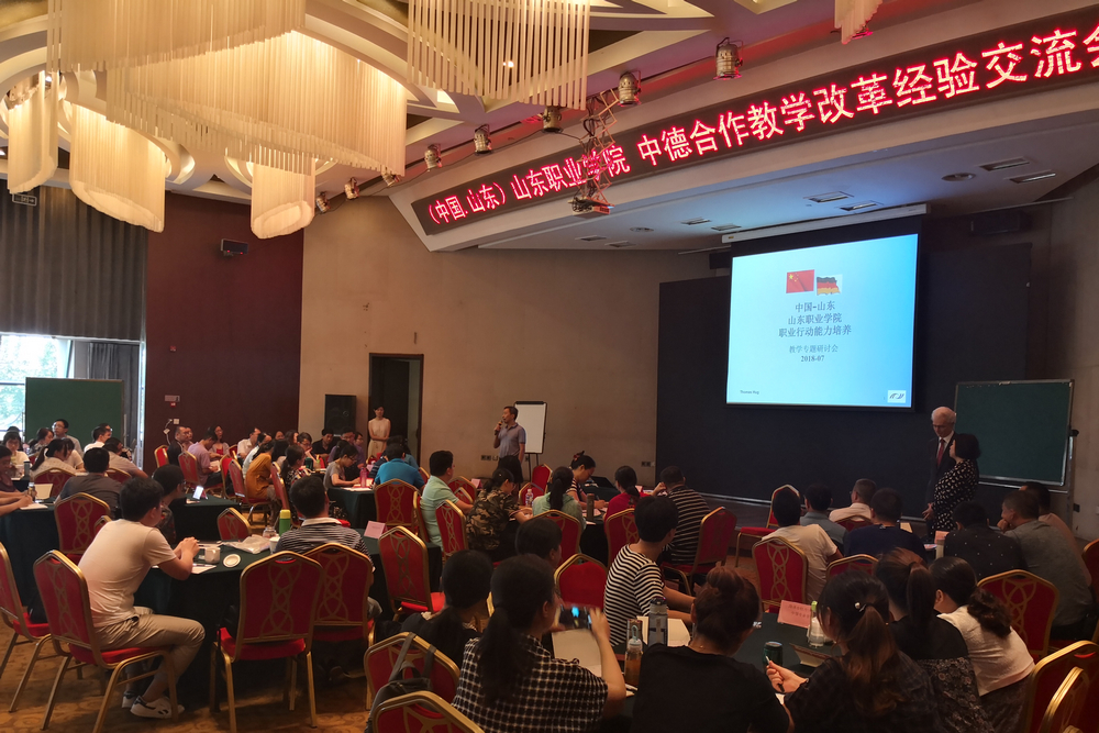 為貫徹落實國務院《國家教育事業發展“十三五”規劃》和中共中央、國務院《關于全面深化新時代教師隊伍建設改革的意見》等文件精神,加強教學骨干隊伍建設,引領行業職業院校教育教學改革,近期,我院在濟南園博園舉辦了中德合作職業教育教學改革經驗交流會,特邀德國巴登符騰堡州著名職業教育家Thomas.Hug(托馬斯.胡格)教授擔任本次經驗交流會主講。德國巴登符騰堡州教育部駐中方代表朱稼出席活動,學院胡格教學模式改革試驗班教學團隊在會上作專業改革經驗分享,副院長郭鵬為經驗交流會致辭。