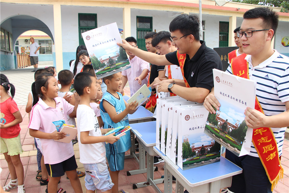 目前,城市軌道交通系“行遠筑夢”小分隊走進我院第一書記幫扶村菏澤市鄆城縣張魯集鎮藺屯村開展以幫扶留守兒童、拜訪優秀老黨員、感受改革開放、手繪文化墻等為內容的一系列實踐活動; 鐵道車輛與機械工程系“追夢赤子心”實踐服務隊走進柳溝社區開展關愛兒童送溫暖、探訪慰問老黨員、志愿宣講到社區等一系列主題活動;鐵道機車與機電裝備系“揚帆起航”服務隊來到魯能泰安希望小學,開始了以“愛心義務支教行,尋根取經共筑夢”為主題的支教活動; 鐵道供電與電氣工程系“知行共進”服務隊走進德州樂陵,開展義務維修家電、愛心送教、追憶崢嶸歲月等主題活動; 鐵道工程與土木工程系“星火”志愿服務隊走進濟寧市汶上縣開展慰問貧困兒童困難戶、參觀楊店家風家訓館、走進農村等主題活動;鐵道信號與信息工程系“知行遠航”服務隊到達臨沂市平邑縣油簍村,參觀“美麗鄉村”體會改革開放40年新農村建設,并為村民帶來精彩紛呈的消夏晚會;鐵道運輸與財經管理系“小梔觀察家”社會實踐隊以青年走基層為主題,立足于社會實踐,感受改革開放40年來沂蒙老區的巨大變化;生物工程系“系食品安全 禁毒防艾”暑期社會實踐服務隊走進威海市榮成市滕家鎮西耩村,通過廣發宣傳單、張貼宣傳橫幅以及廣播宣傳的形式,讓居民了解毒品與艾滋病的知識以及日常生活中食品安全小知識。另外,還有學院“紅藍青”志愿服務隊、無償獻血志愿服務隊、“科夢”志愿服務隊、圖管會志愿服務隊、機械系志愿服務隊等同學利用暑期在濟南火車站、山東省血液中心、山東省科技館、山東省圖書館、山東省文化館等省級文明窗口持續開展志愿服務活動,展示山職學子文明禮儀、責任擔當的良好形象。