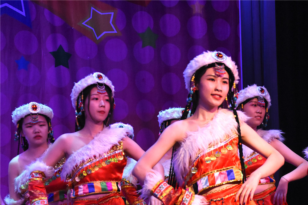 晚會在一支唯美的藏族舞《雪山姑娘》中拉開帷幕,柔美的動作,輕快的舞步,無不展現出雪山姑娘的熱情豪放。隨后《青花瓷》《彩云之南》《牽絲戲》《雨霖鈴》四支舞蹈清新雅致,柔美溫婉,女同學們舉手投足之中,將山職女生的嫻靜淑美、活潑靈動演繹得淋漓盡致。舞蹈《歡欣鼓舞》,濃郁的民風,整齊的鼓點,粗狂的舞步彰顯的是山職學子的熱情與豪邁。《草原漢子》和《溜溜的康定溜溜的情》則是把觀眾帶入濃濃的民族風情之中。