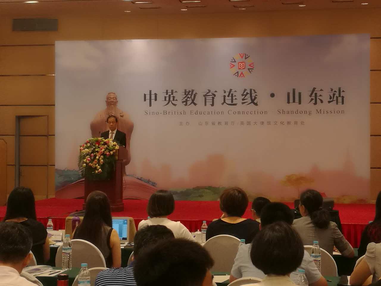 山東省教育廳總督學孟慶旭以及英國總領館文化教育處中國區教育合作發展總監Ralph Roger致辭。英國布里斯托大學、德比大學、德蒙福特大學、提賽德大學等共9所大學以及參會的山東部分高校做了學校簡介、專業特色以及國際化成就。
