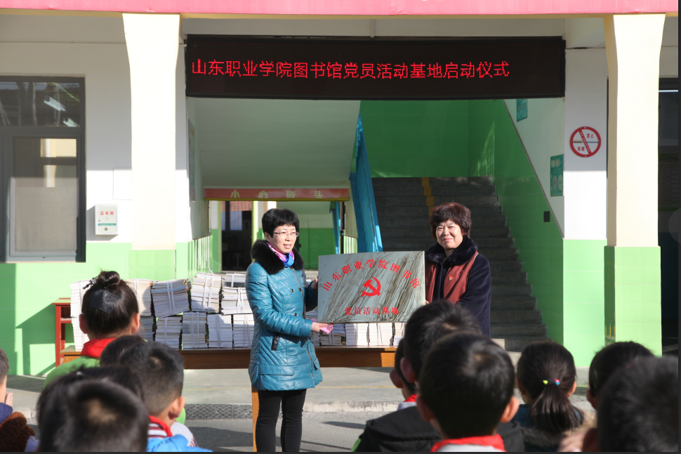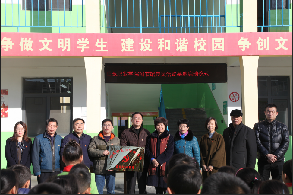 隨后,祝院長和莊科小學賈校長共同為圖書館黨員活動基地揭牌,標志著山東職業學院圖書館黨員活動基地正式成立。