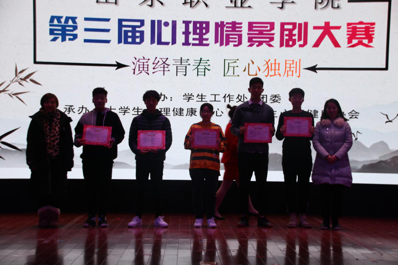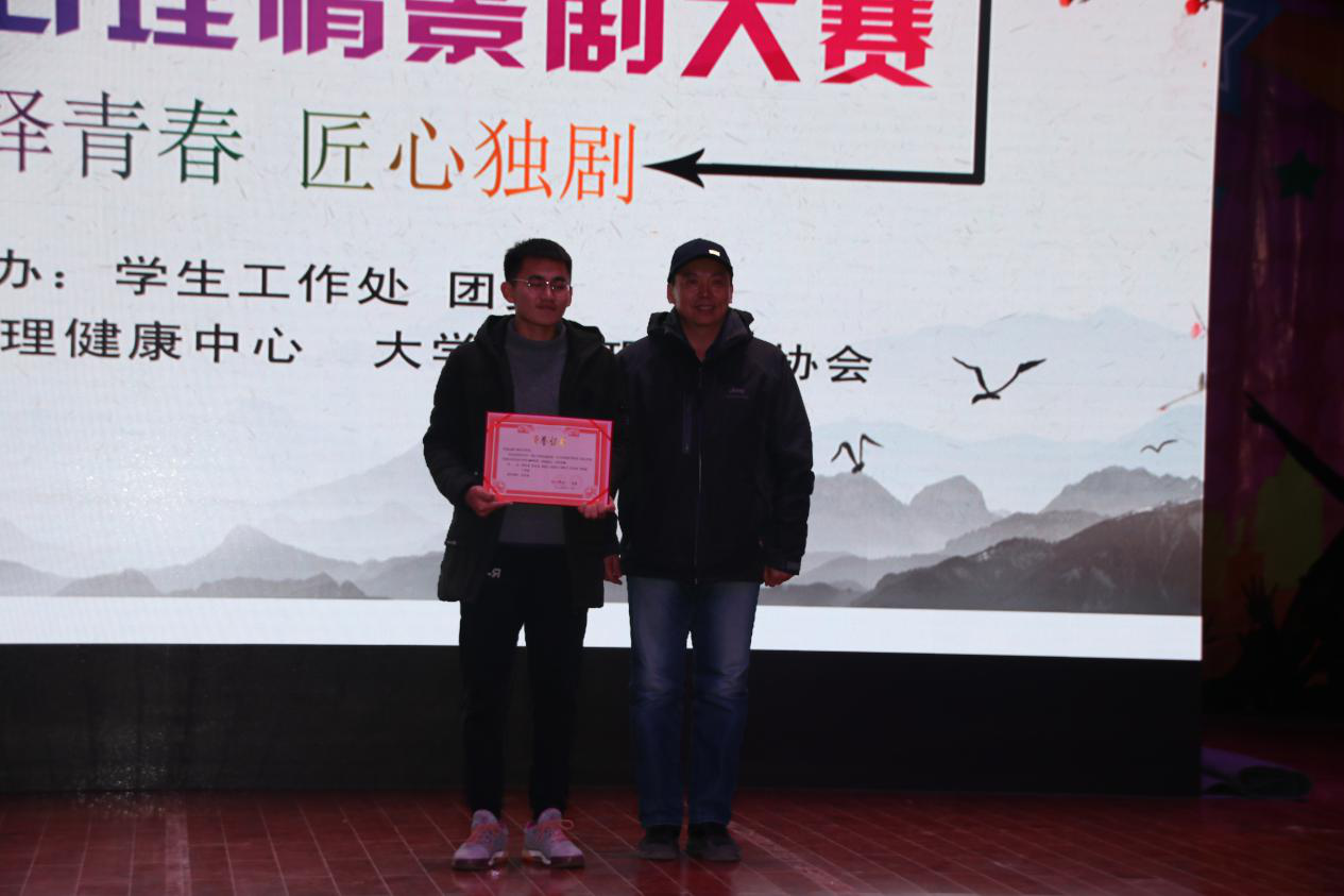 本次心理情景劇大賽主題為“演繹青春,匠心獨劇”,各參賽隊伍結合自己的生活經歷和成長感悟,從大學生活的不同方面入手,展示出了同學們內心深處的世界,并且每一位演員都將自己深深的融入團隊中,用情景劇將心理情感表現得淋漓盡致。有的劇目展現了當代青年雖充滿理想,可將理想想像過于簡單,失敗后經過認真思考又實現了人生的目標;有的劇目表現出了當代青年的虛榮心,不愿面對自己的貧窮而變得虛偽,不接納自己的父母,最后也是經過一番內心的洗禮后,理解了父母的不易,懂得父母的苦心與愛意;有的劇目表現了因為沉迷于手機而忽略親情友情,呼吁同學們放下手機,認真對待身邊的每一個親人朋友。