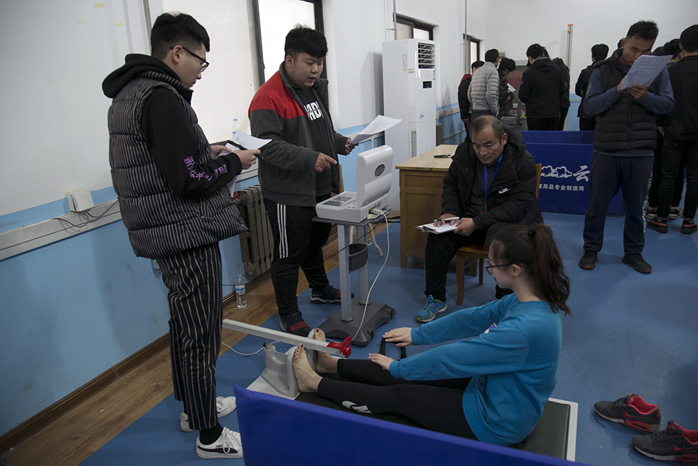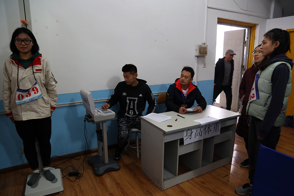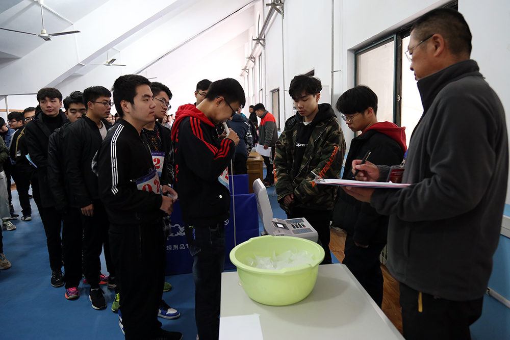 匯報會上,祝介安簡要介紹了學院情況,趙龍就學院體育教學及體質測試工作做詳細匯報。會議后,專家組成員來到測試場地對抽測的70名學生進行現場數據采集,體育教研室許春光等六位教師以及城市軌道交通系輔導員叢樹勝輔助專家組成員完成了包括身高、體重、肺活量、坐位體前屈、跳遠、仰臥起坐(女生)、引體向上(男生)、50米、800米(女生)、1000米(男生)十項體測數據的采集工作。