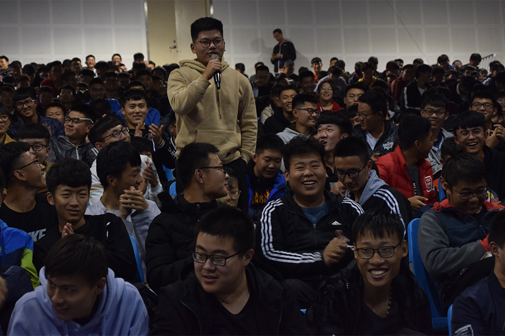 講座中,滕暉教授首先從一個大學生的應聘案例講起,向同學們強調了溝通和有效表達對于大學生成才、成功的重要意義,幫助大家樹立了“成功從有效溝通開始”的理念。接下來,滕教授向同學們系統講授了日常生活中的常用的溝通方法,“簡單、有趣、相關”的交流原則,以及“敢不敢、會不會、能不能、靈不靈、平不平”五個語言表達的層次,并鼓勵大家多說、多練,不斷提高自身的交流水平。為了能讓同學們更好的掌握交流技巧,滕教授與同學們現場活動,創設情境,開展個案短訓。講座最后,同學們向騰輝教授提出部分自己在交流方面的疑問和困惑,滕暉教授為大家一一耐心解答并提出自己的建議和意見。