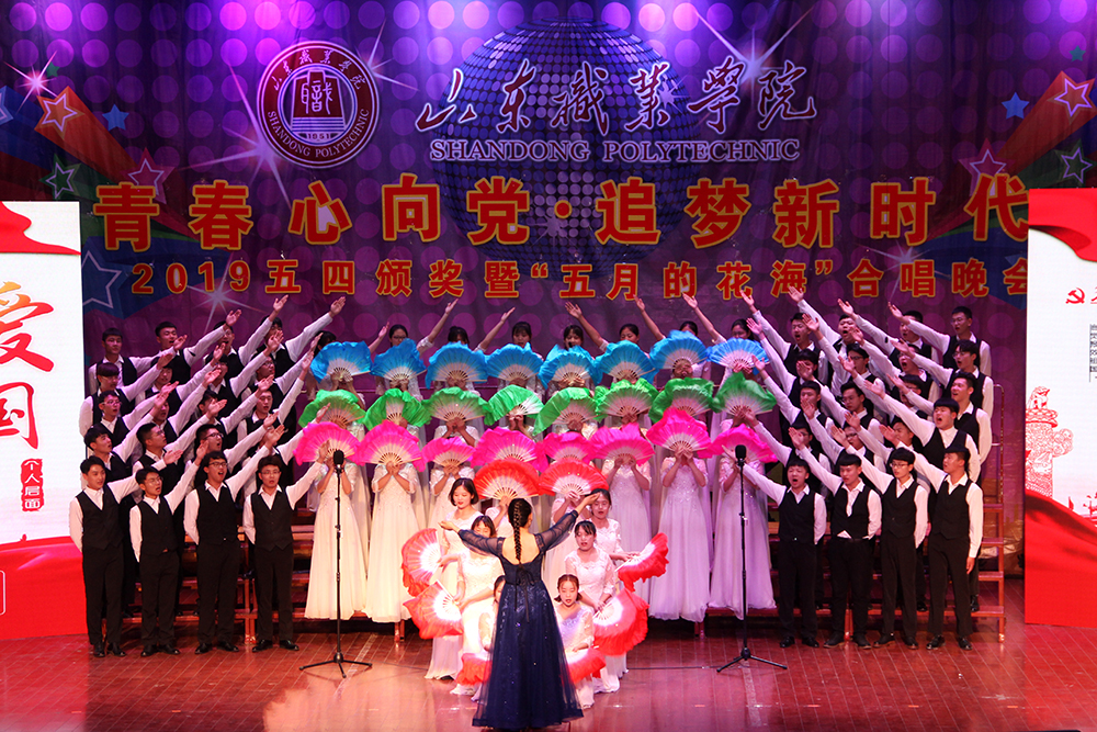 5月9日,學院舉辦了“青春心向黨·追夢新時代”五四頒獎暨“五月的花海”合唱晚會,表彰優秀集體和先進個人,放歌贊頌祖國七十年來取得的輝煌成就,抒發致力于中國特色社會主義新征程的滿懷激情,表達了積極投身實現中華民族偉大復興的中國夢的堅定信心。