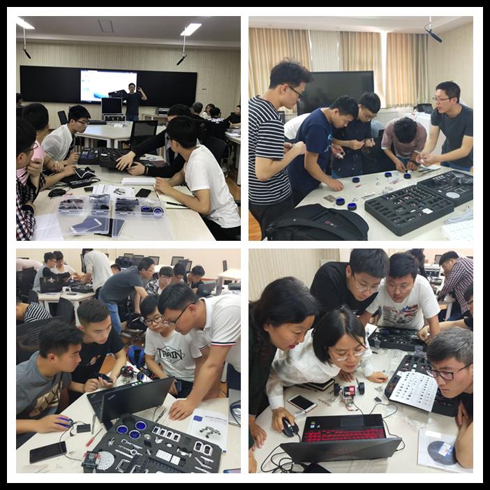 此次培訓內容包括全國中國工程機器人大賽、山東省智能控制大賽介紹;“探索者”機器人創新平臺機械結構及電子模塊介紹;“探索者”機器人創新平臺編程環境介紹;基于機器人的產品創新設計、組裝及調試。培訓采取項目式教學,教學做一體,寓教于樂,在行動中開展學習,讓學習充滿樂趣。此次培訓對培育校園創客文化、營造創新創業環境起到了積極推動作用。